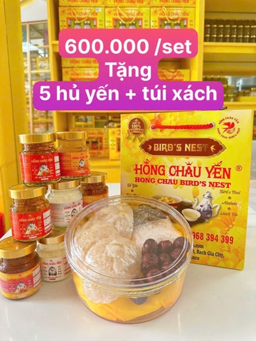 - Set Combo Yến 600.000 - Tặng 5 Hủ: 1 Yến Ăn Kiêng ISOMALT, 2 Yến Kid, 2 Yến Collagen + Túi Xách HCY Nhỏ + Tem HCY